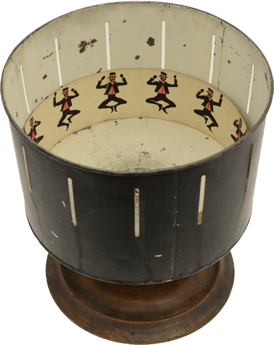 The journey of animation begins with early optical devices that created the illusion of motion. One of the first of these was the magic lantern, invented in the 17th century, which used a light source and hand-painted glass slides to project images. One of the first commercially successful devices similar to it, invented by the Belgian Joseph Plateau in 1832, was the phenakistoscope, a spinning cardboard disk that created the illusion of movement when viewed in a mirror. In 1834 William George Horner invented the zoetrope, a rotating drum lined by a band of pictures that could be changed.